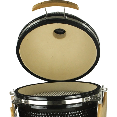 Kamado is a word of Japanese origin, meaning a system of cooking in which a clay or ceramic cooker is used. The Kamado Grill is designed with a low air circulation which prevents the food from drying out and losing flavour. Wood chippings can be added which allows for a delicious, smoky BBQ taste.